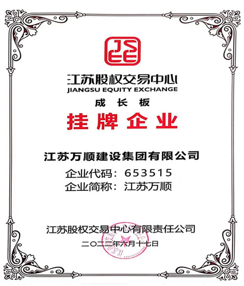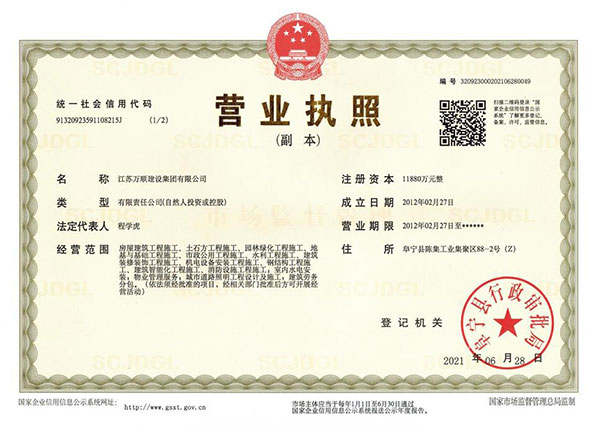 江蘇萬順建設集團于2012年2月經(jīng)鹽城市阜寧縣工商行政管理局批準設立,目前已形成建筑施工總承包、建材銷售等綜合性、多元化企業(yè),也是一家擁有現(xiàn)代經(jīng)營管理模式、追求可持續(xù)發(fā)展的企業(yè)。